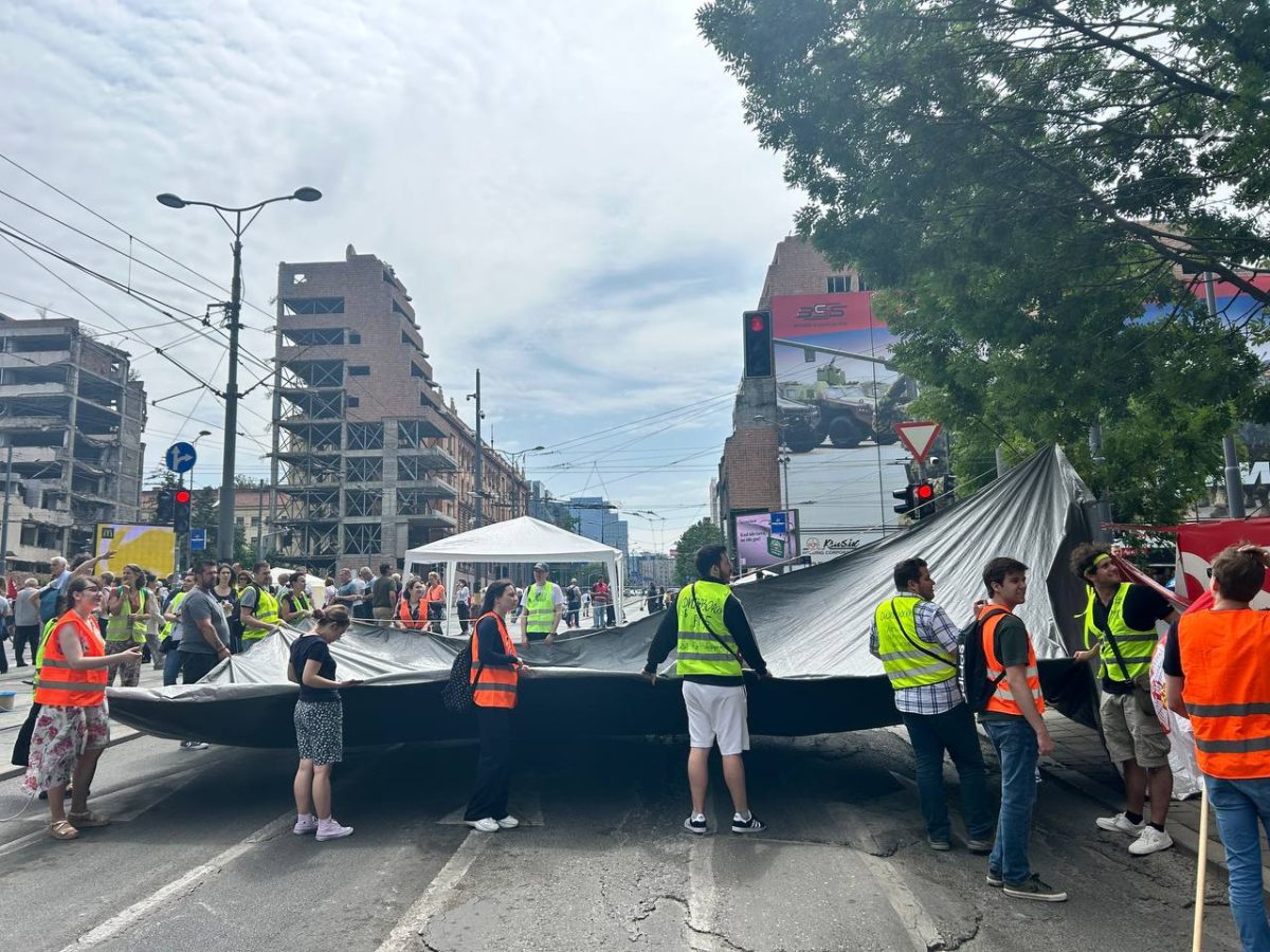 Članovi i članice akademske zajednice koji su okupljeni oko inicijative „Pobunjeni univerzitet“, juče su blokirali raskrsnicu ispred zgrade Vlade Republike Srbije u Beogradu, na uglu Kneza Miloša i Nemanjine ulice.